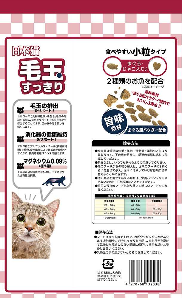 愛猫の毛玉の排出をサポートする総合栄養食。