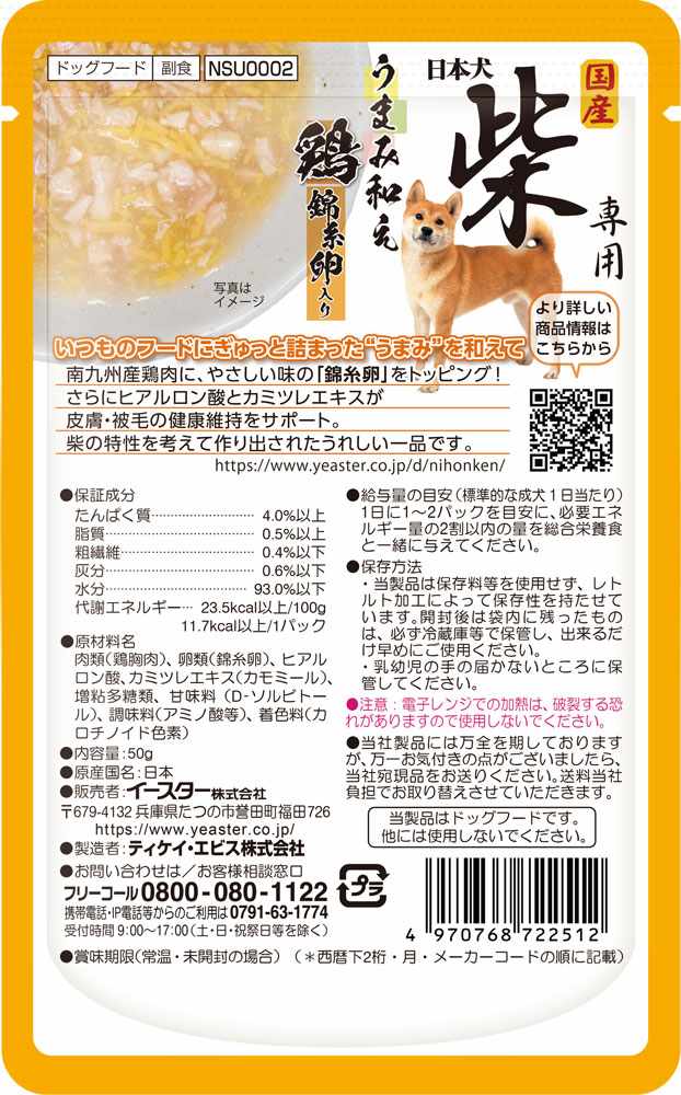 【4月30日終売予定】日本犬 柴専用 うまみ和え 鶏 錦糸卵入り 49g