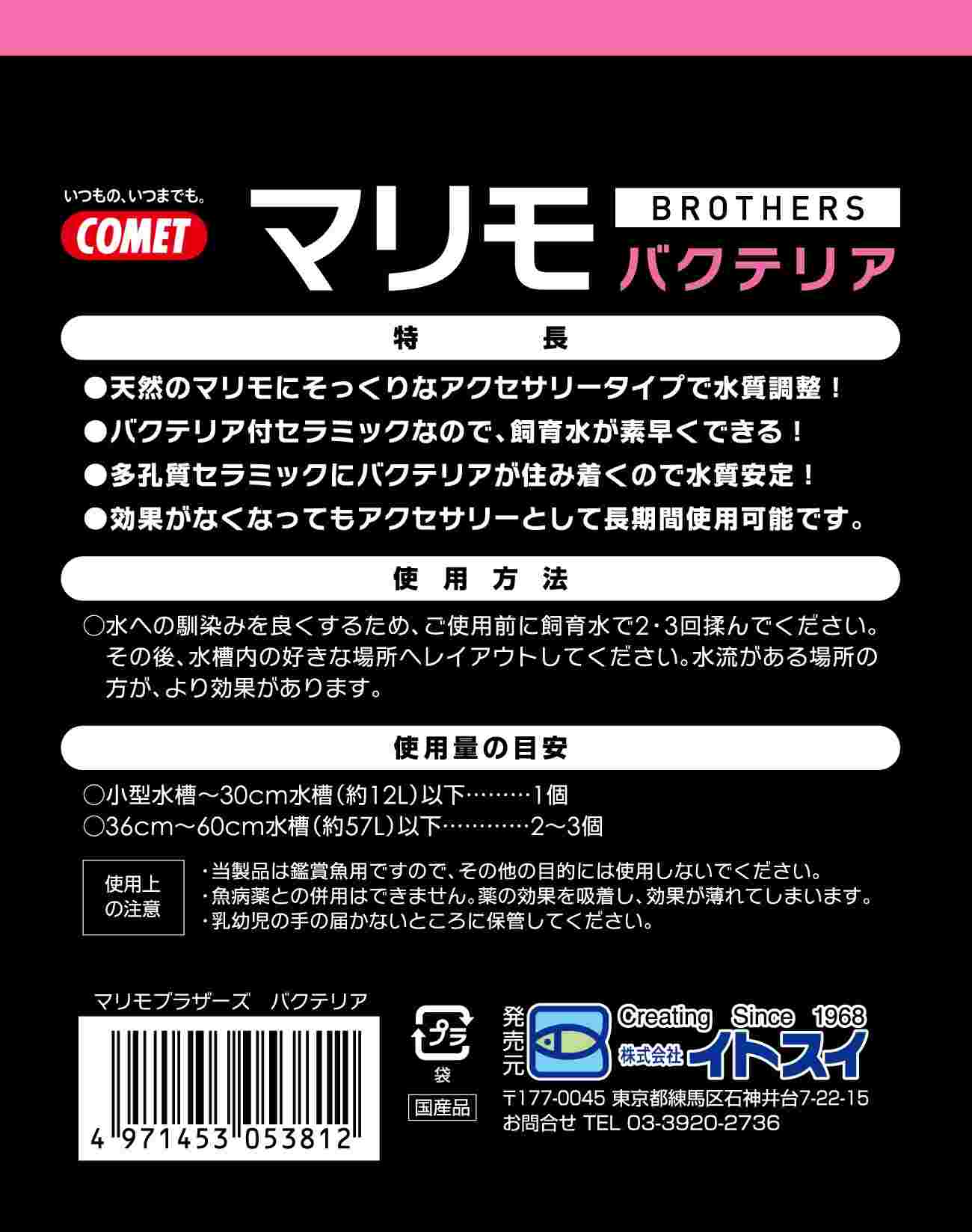 天然のマリモそっくりなアクセサリータイプの水質調整剤で、バクテリア付セラミックなので、安定した飼育水が素早く出来ます。