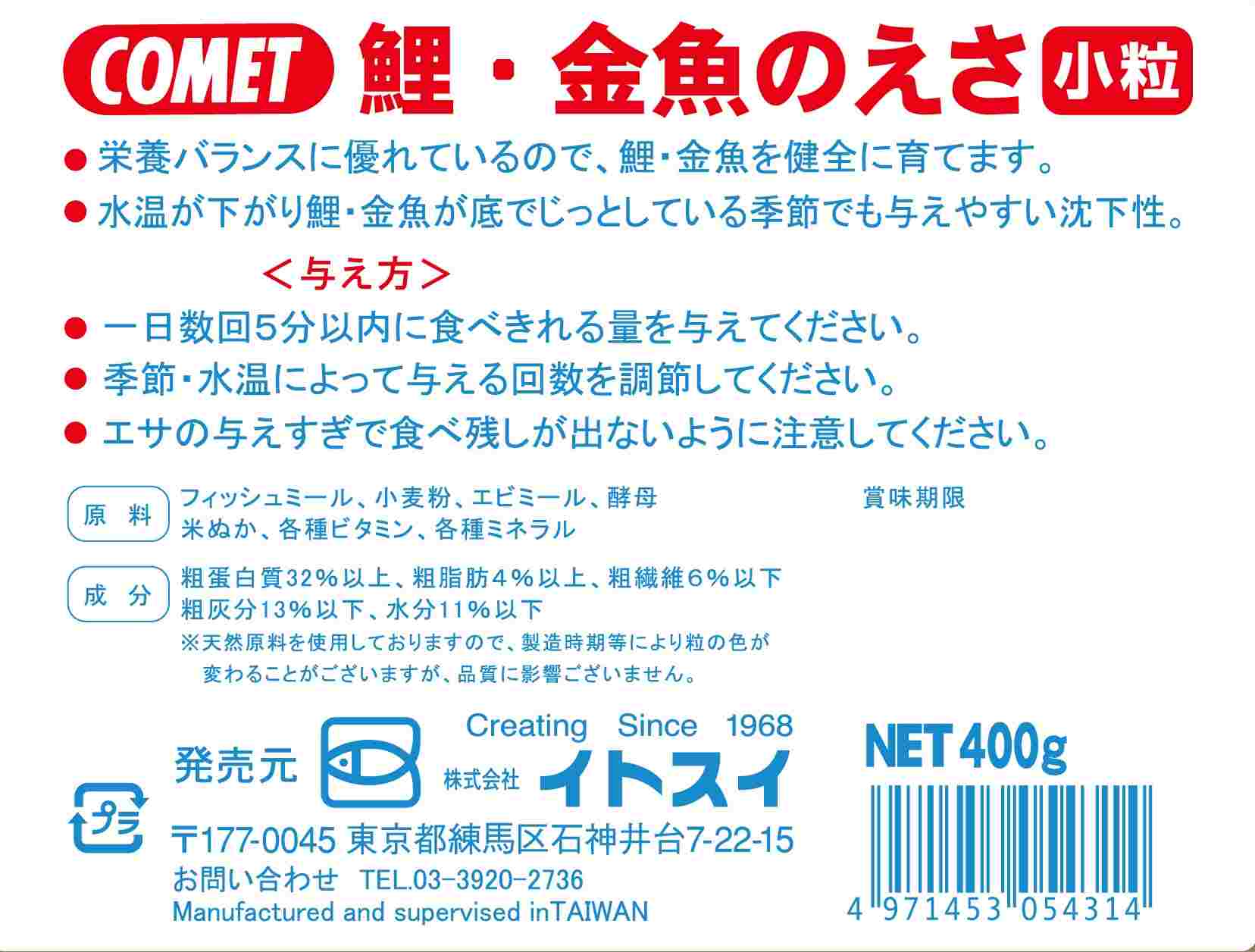 コメット 鯉・金魚のえさ 小粒 400g