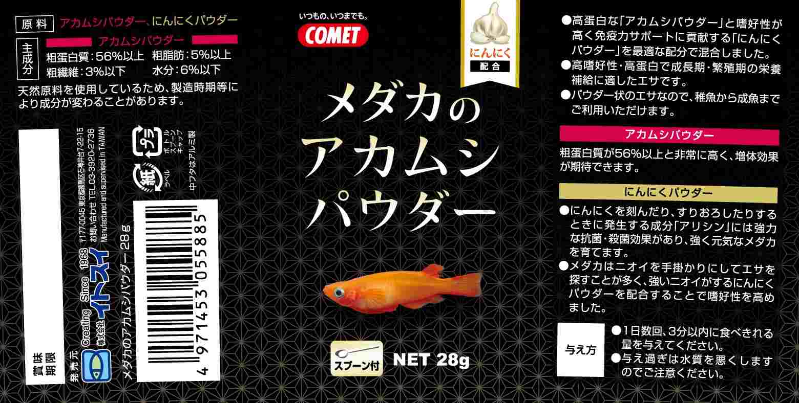 〇にんにくパウダー:嗜好性アップ、抗菌、殺菌効果により強く元気なメダカの育成効果。