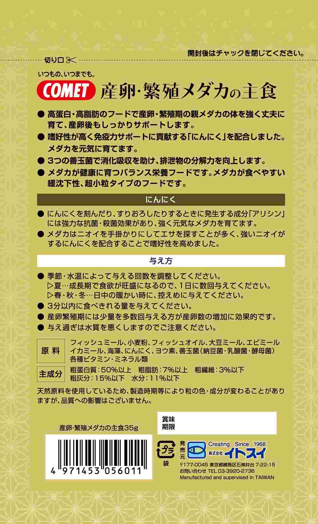 高蛋白・高脂肪のフードで産卵・繁殖期の親メダカの体を強く丈夫に育て、産卵後もしっかりサポートします。