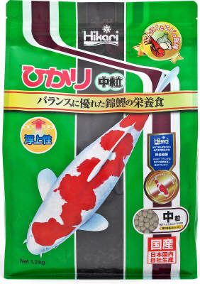 良質原料をバランスよく配合、丈夫で美しい錦鯉に育ちます。粒が崩れにくく水の汚れを抑えます。(中粒)