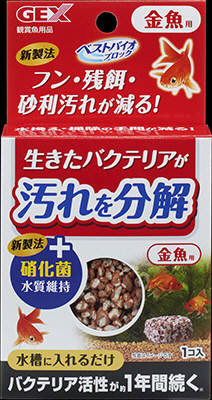 ・金魚水槽に沈めて使用。金魚のフンや残餌など水の汚れとなるゴミを分解する「汚れ分解バクテリア」