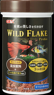 原材料:フィッシュミール、小麦粉、シュリンプミール、胚芽、昆虫ミール、ドライイースト、大豆油、生菌剤、スピルリナ、ミネラル類(リン、カルシウム、カリウム、鉄)、ビタミン類(A、B、D3、E)、増粘安定剤(グルテン、加工でん粉)、着色料
