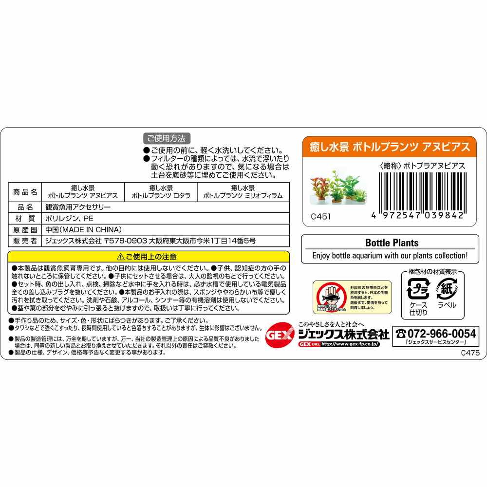 ジェックス 癒し水景 ボトルプランツ アヌビアス