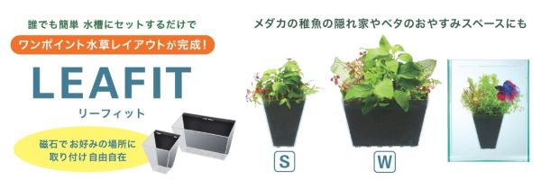 磁石で固定ができるため、水中内どこでも設置が可能。(水槽ガラス厚6mmまで)植栽部を目立たせる形状を採用。特長・水草を入れて水槽に取り付けるだけ!簡単にワンポイントレイアウトが完成します。・樹脂製なので軽量&強力磁石で水槽にしっかり固定できます。(ガラス厚6mmまで)使用方法・本体内にソイルなどの底砂を敷き、水草を植えてください。・レイアウトした本体を水槽内にゆっくりと沈め、本体内部が全て水で満たされたことを確認してから完全に水中に入れ、水槽の外側から磁石で固定してください。・使用環境にもよりますが、半年から1年を目安に底砂の交換をおすすめします。