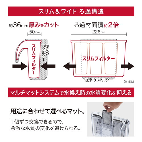 新開発DC-Xポンプ採用。ろ過性能UP、極めて静音&省エネ化。