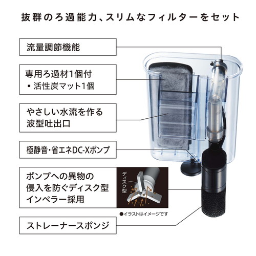 DC-Xポンプ採用の静音スリムフィルターをセット。