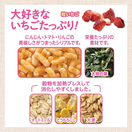 ●りんご、トマト、にんじんのおいしさギュッとこだわりシリアル入り。