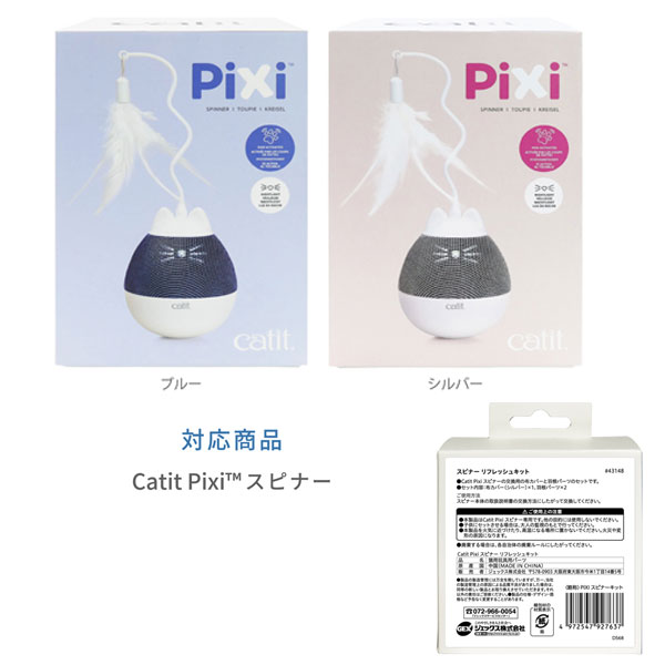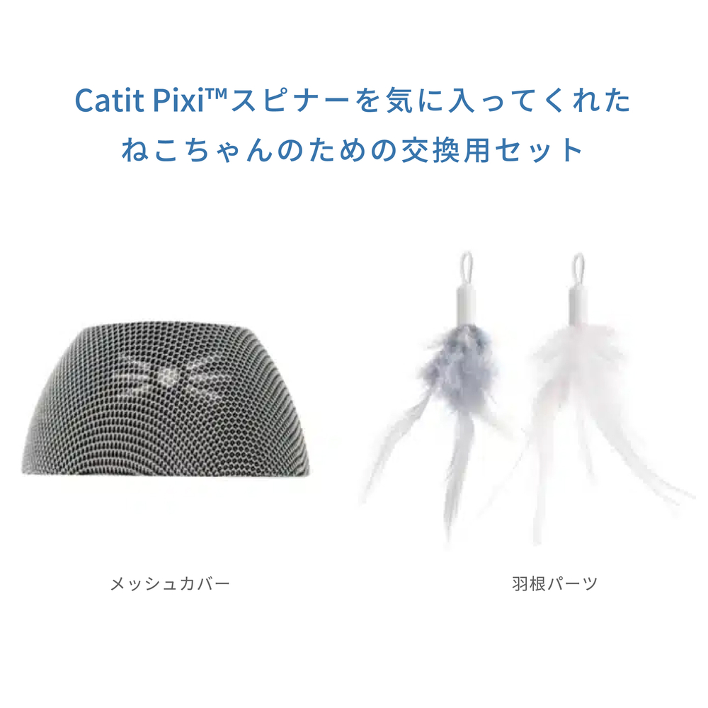 Catit Pixi ねこちゃんと飼い主さんに幸せを。 Catit Pixiは私たちの大切な家族の一員であるねこちゃんのために、猫型にかわいくデザインされたハイエンドなねこちゃん専用のブランドです。 ナイトライト付き回転式猫おやつディスペンサー Catit PIXIスピナー用のリフレッシュキット、交換パーツ。 ねこちゃんが遊んで破損しやすい布カバー(シルバー)と羽根パーツの交換セットです。