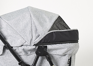 幌の開口部はファスナー式でスムーズに開閉でき、小さなワンちゃんやネコちゃんの抜け出しが防止できます。