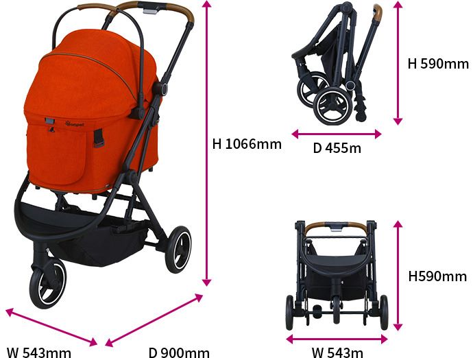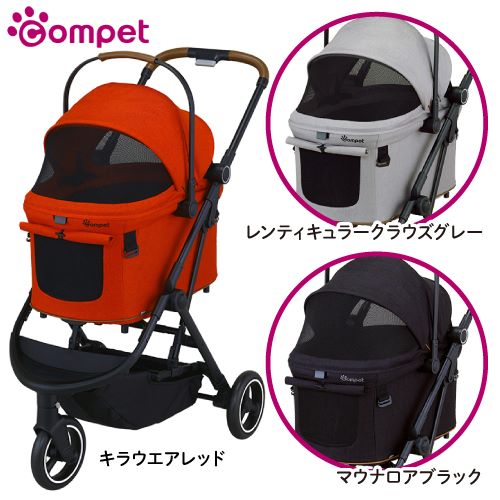 ルルテイル キャリーのポイント●うれしい軽さコムペットの3輪車体は片手でラクラク押せる軽快さ。持っても車体4.7kg、キャリー3.2kgの軽量設計。●うれしい収納キャリーを外して片手で車体を簡単に折りたたみ!車でも玄関でも場所を取らず、コンパクト。●うれしい快適小型犬の多頭乗せも、中型犬もゆったり乗れる広々設計。幌は前後両方から開閉でき、メッシュ窓も3カ所設け、通気性抜群。●うれしいお手入れメンテナンスフリーのパンクレスタイヤを採用。キャリー内部を外して洗えていつでも清潔!