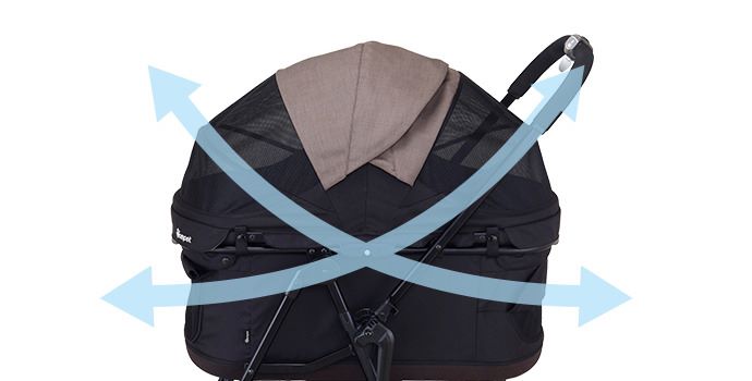 前後4ヵ所になったエアスルーウィンドーは、風を通し、カート内の熱をにがすので快適にすごせます。