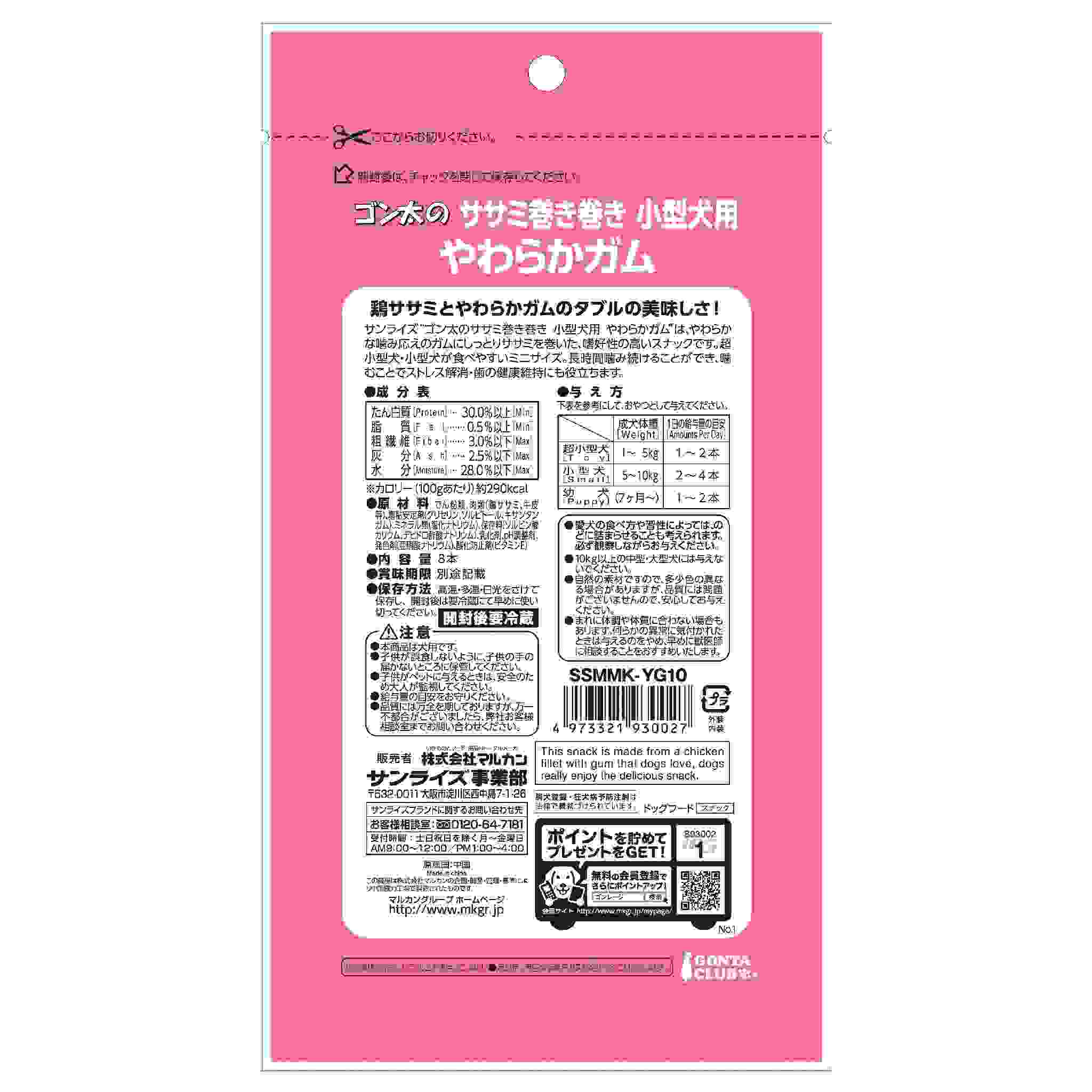 やわらかな噛み応えのガムにしっとりササミを巻いた、嗜好性の高いスナックです。超小型犬・小型犬が食べやすいミニサイズ。長時間噛み続けることができ、噛むことでストレス解消・歯の健康にも役立ちます。