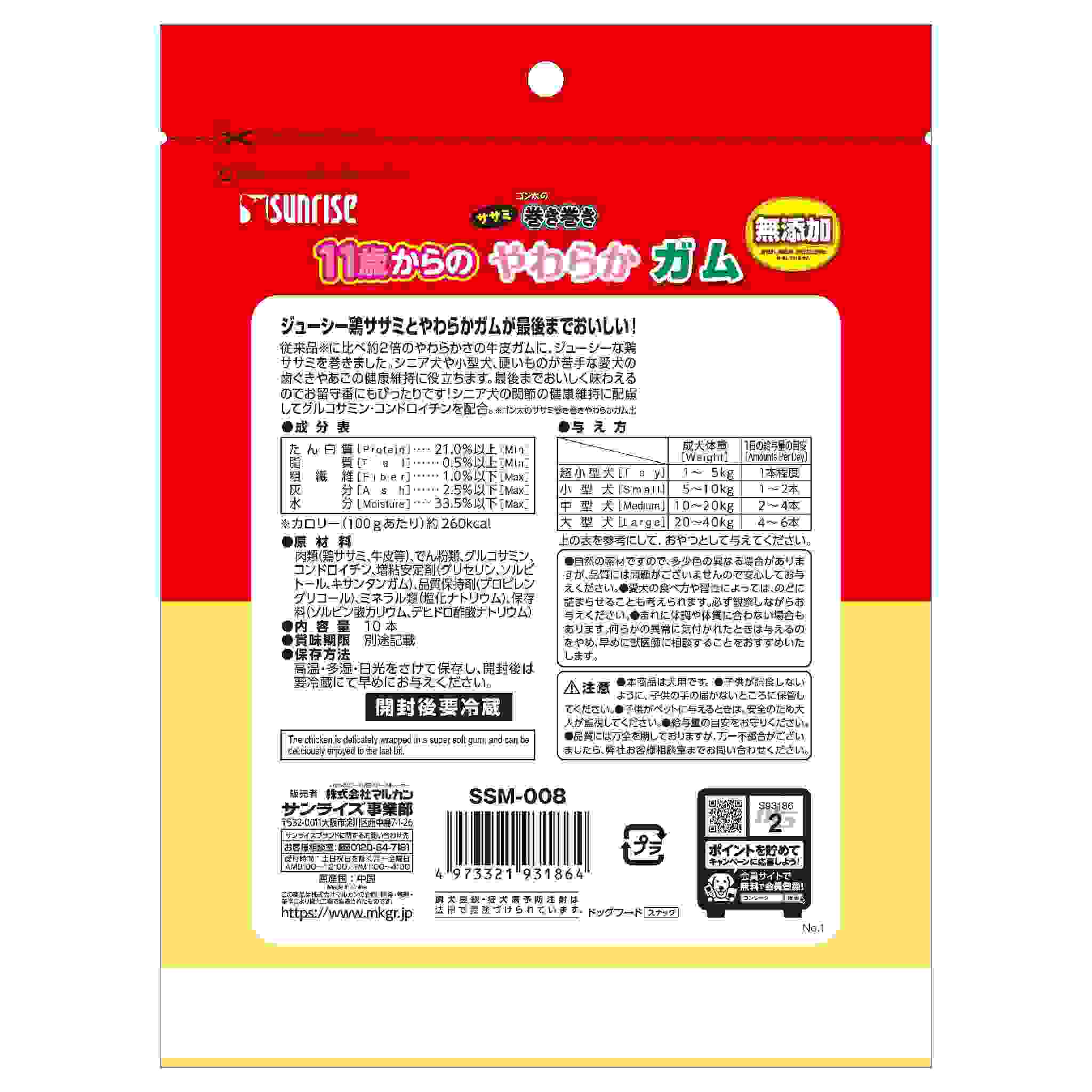 ゴン太のササミ巻き巻き 11歳からのやわらかガム 10本