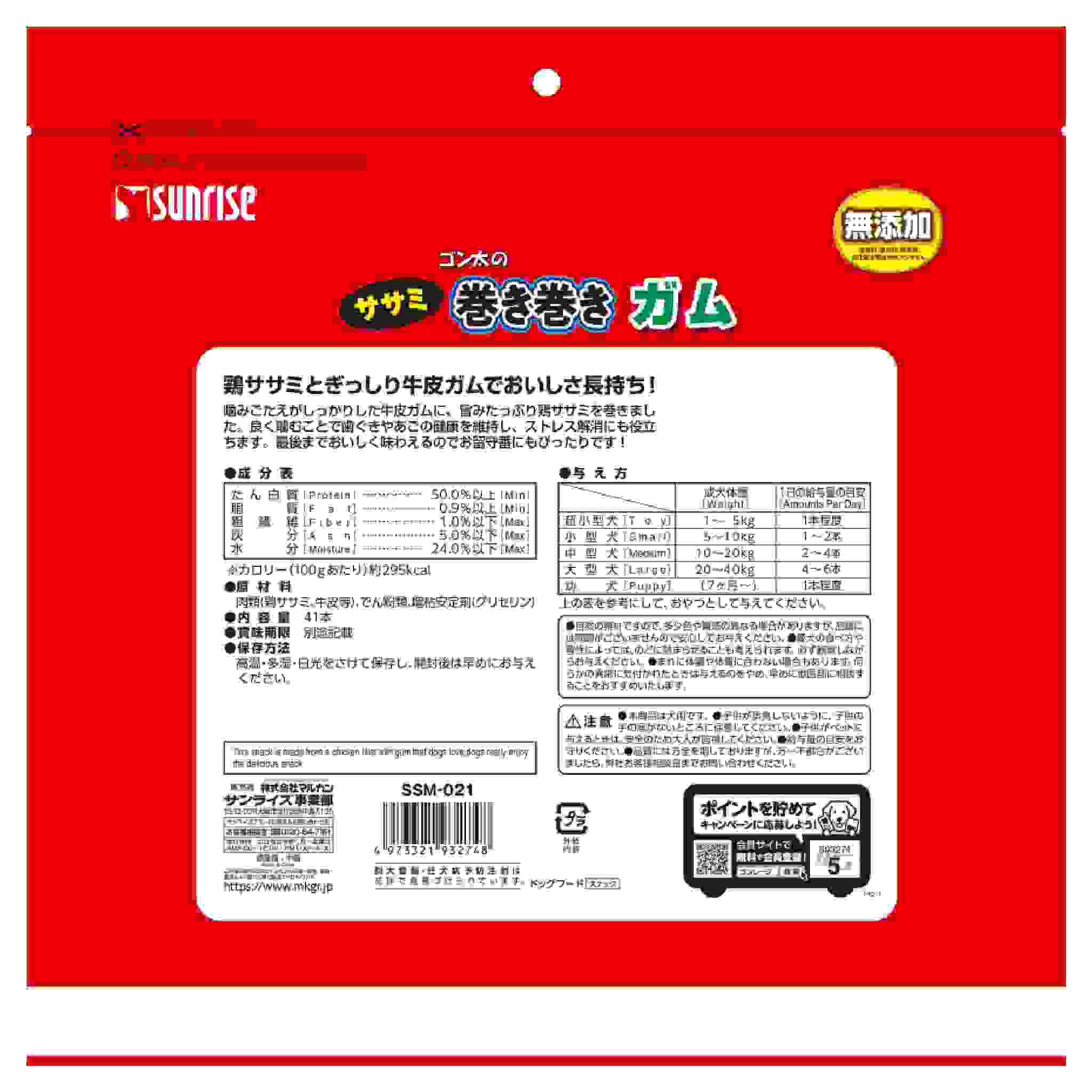 適度な噛み応えのガムにワンちゃんの大好きな鶏ササミを巻いた嗜好性の高いスナックです。