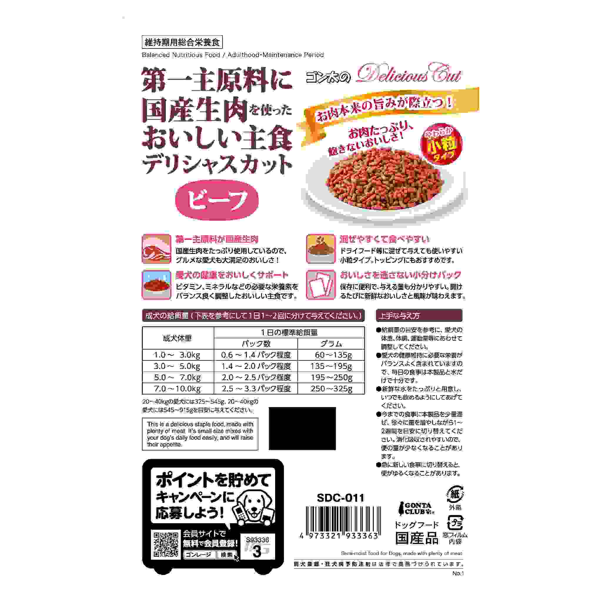 お肉本来の旨みが際立つ!ビタミン、ミネラルなどの必要な栄養素をバランス良く調整したおいしい主食です。国産生肉を第一主原料に使用しているので、グルメな愛犬も大満足のおいしさです。トッピングにもおすすめな混ぜやすい小粒タイプで、いつものフードが飛びっきりのおいしさに変身します。