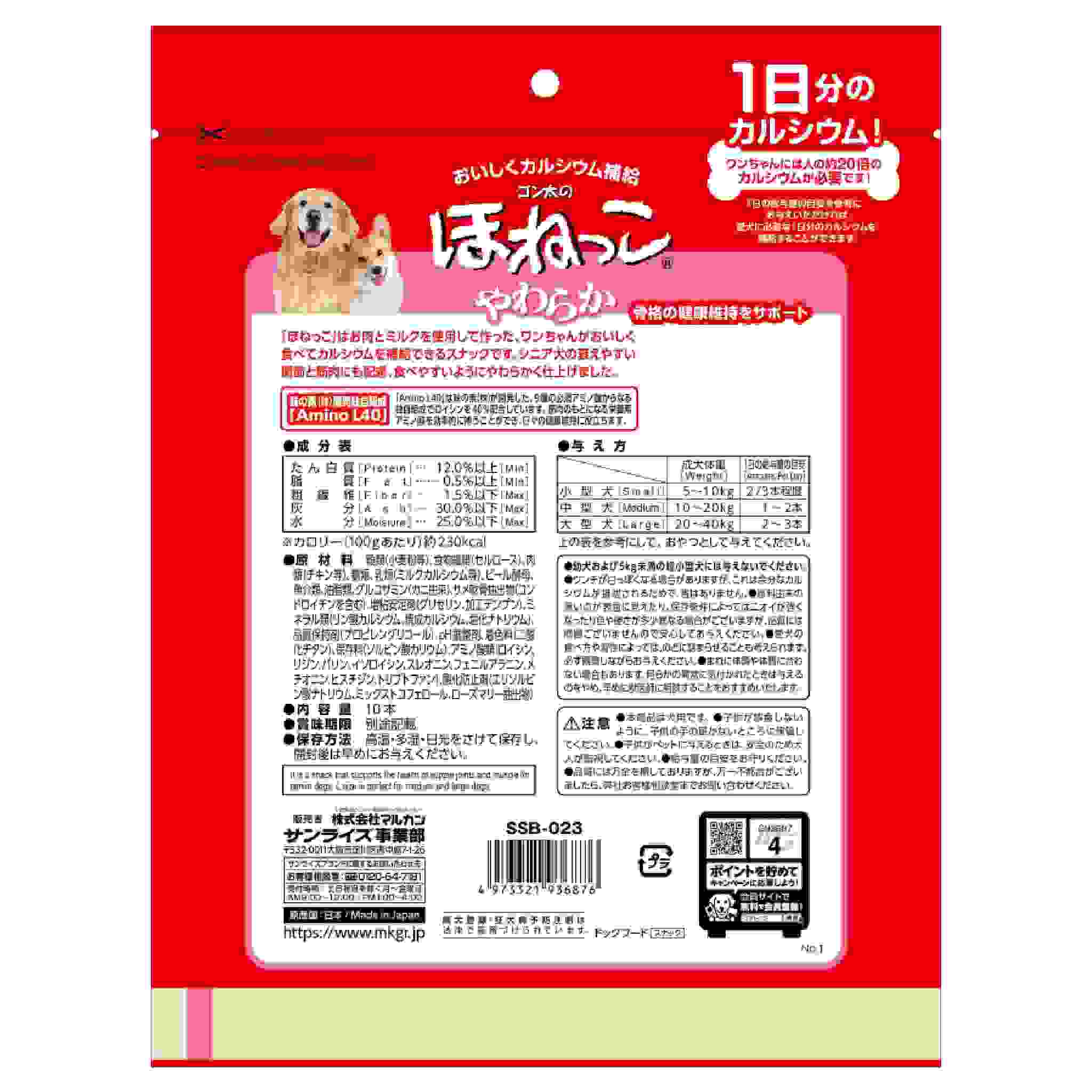 コツコツ食べて、健康でしなやかな関節と筋肉の維持をサポート!シニア犬のために「Amino L40」・グルコサミン・コンドロイチンを強化※配合。中型・大型犬にぴったりのLサイズ。※ほねっこ比150%