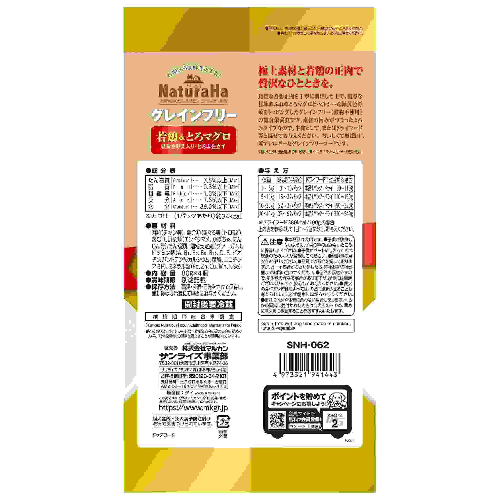 ナチュラハ グレインフリー Premium 若鶏&とろマグロ 緑黄色野菜入り・とろみ仕立て 80g×4個
