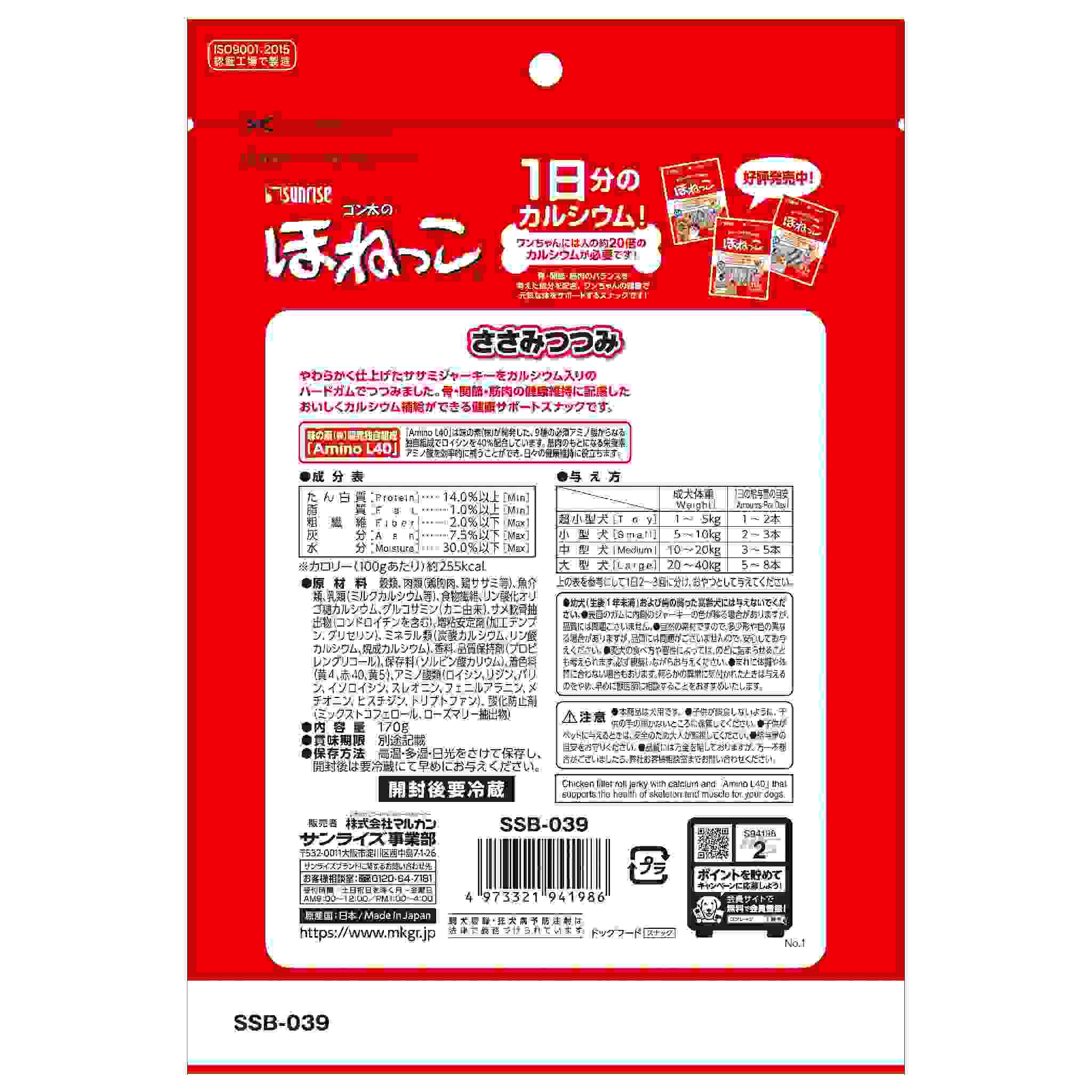 ゴン太のほねっこ ささみつつみ 170g