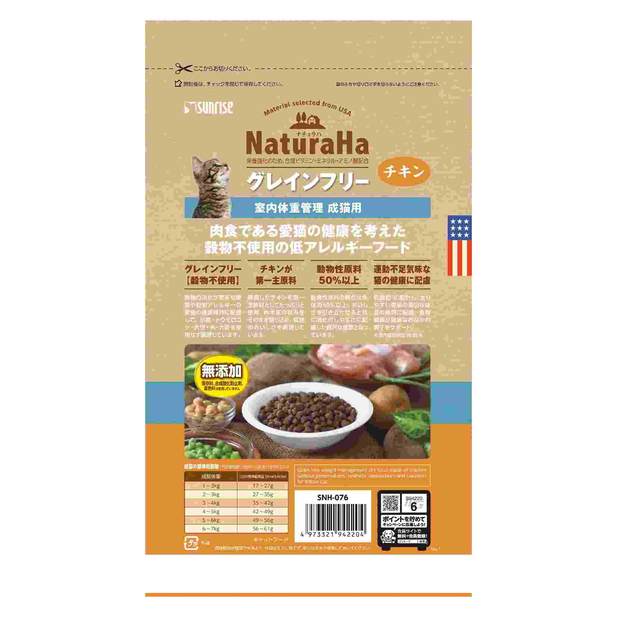保存料・合成酸化防止剤・着色料不使用、グレインフリー(穀物不使用)で作ったドライタイプの総合栄養食です。穀物を使用していないので、お肉本来の旨みが味わえ、穀物アレルギーの愛猫にも安心して与える事ができます。運動不足気味な愛猫の健康に配慮した体重管理用。