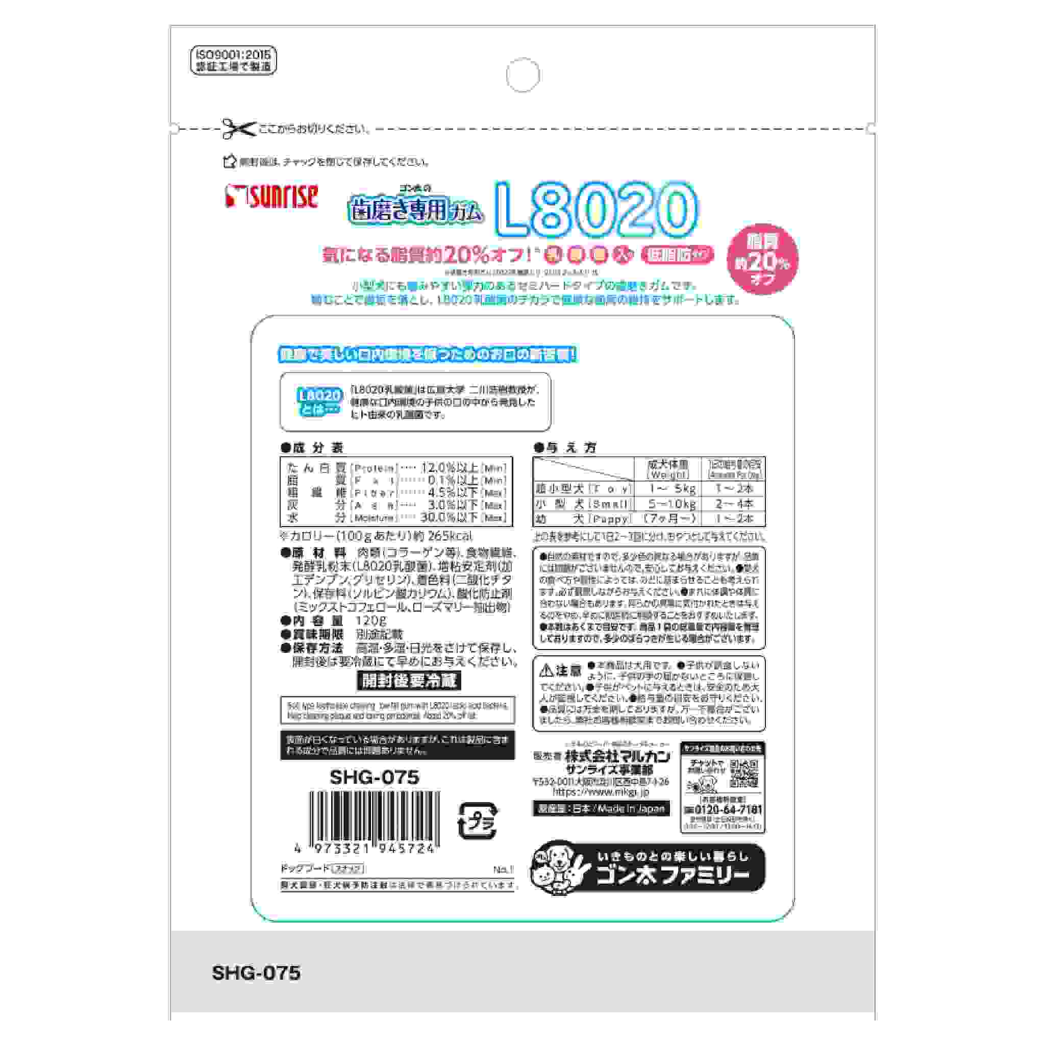 小型犬にも噛みやすい弾力のあるセミハードタイプの歯磨きガムです。噛むことで歯垢を落とし、L8020乳酸菌のチカラで健康な歯周の維持をサポートします。気になる脂質約20%オフ!