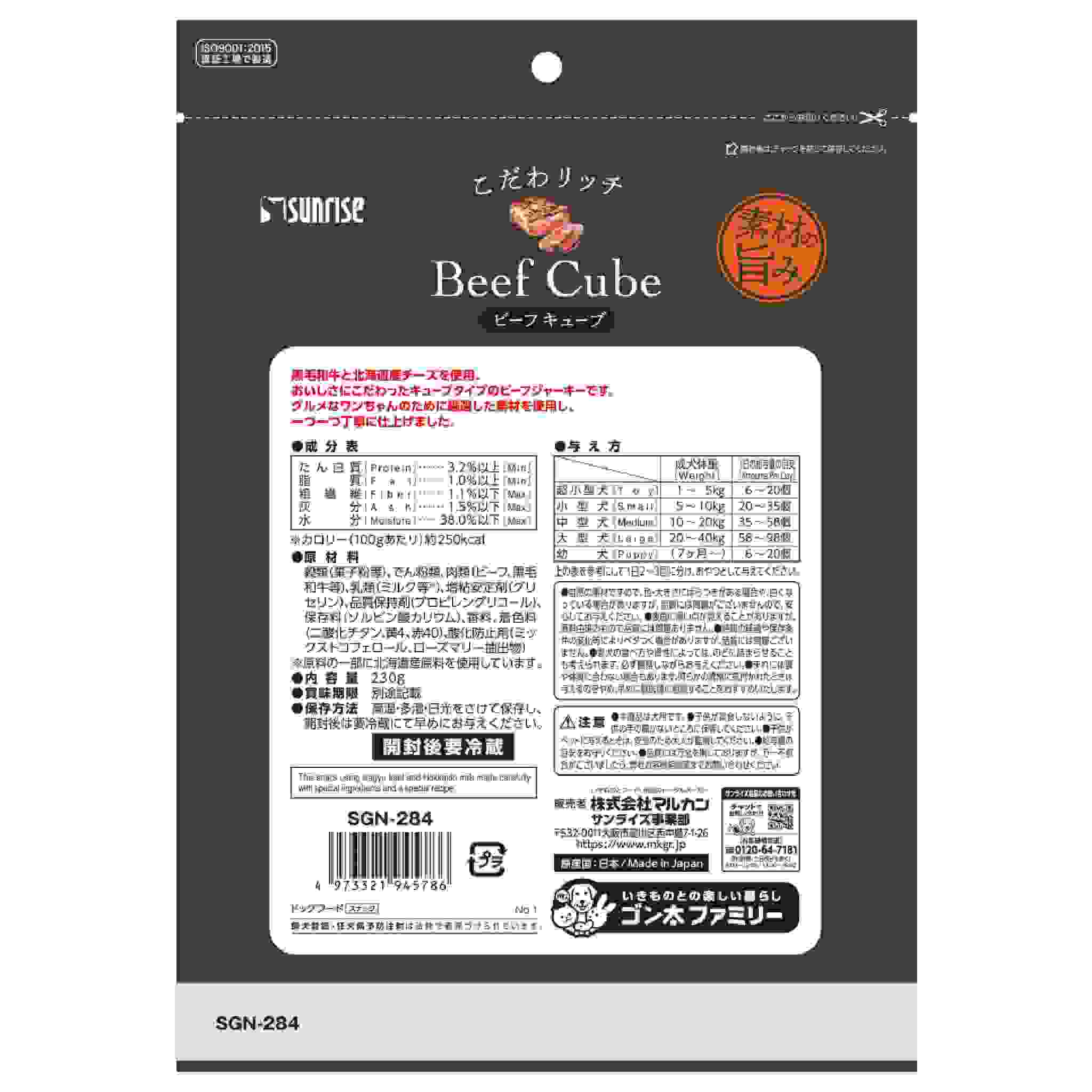 グルメなワンちゃんのために厳選した素材を使用し、おいしさにこだわったキューブタイプのビーフジャーキーです。