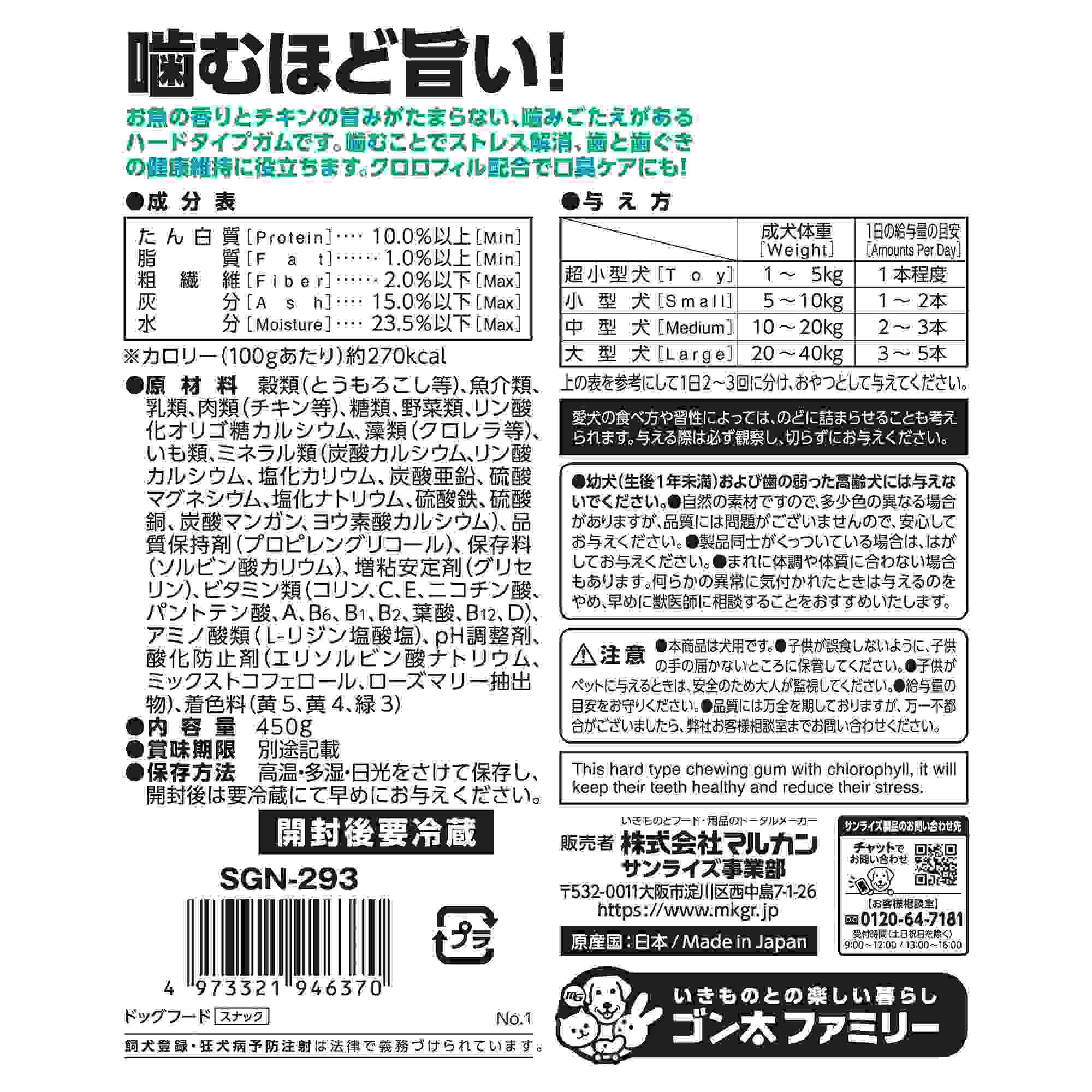 お魚の香りとチキンの旨みがたまらない噛みごたえがあるハードタイプガムです。