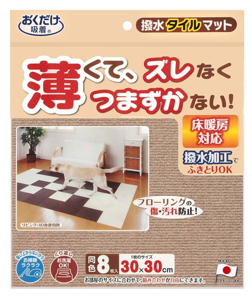 おくだけ吸着 撥水 タイルマット 8枚入 ベージュ