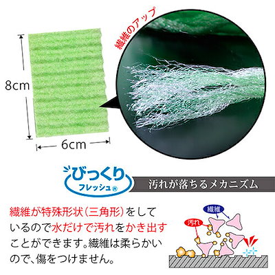 洗剤を使わないのでペットにも安心です。 ステンレスやプラスチックを傷つけません。 洗うものに合わせて自由に形が変えられます。 水だけで食器のヌメリを落とすことができる、特殊断面繊維を不織布にして、細かい部分も洗いやすいサイズにカットしました。 20枚入りで、パッケージは収納ケースとしてそのまま使えます。