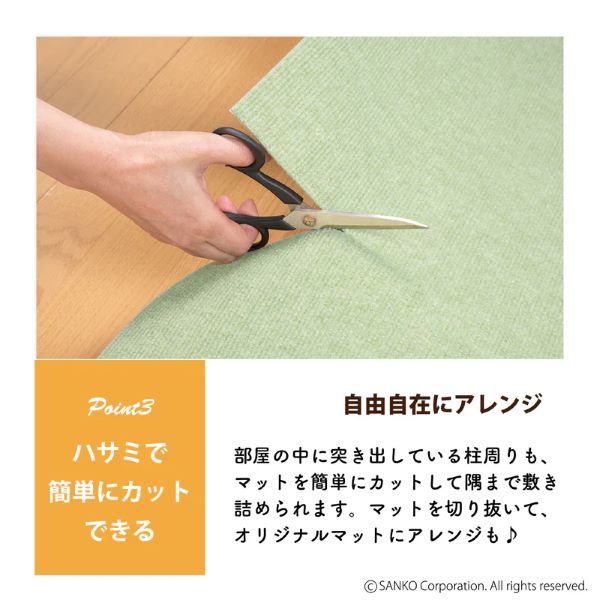 ●敷きたいスペースに合わせて手軽にハサミでカットできます。