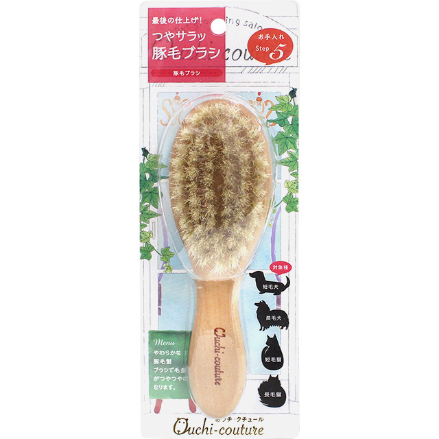 ・最後の仕上げにつや出しをするブラシです。・静電気が起きにくい豚毛ブラシです。・適度な油分を含む豚毛毛並みつやつやになります。・対象種:短毛犬・長毛犬・短毛猫・長毛猫