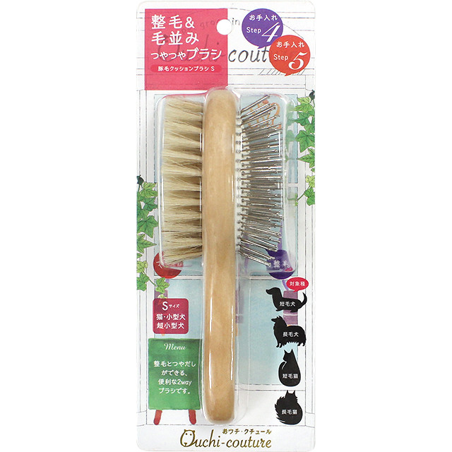 ・ピン側で毛並みを整え、豚毛側でつや出しができる2Wayブラシです・地肌にやさしくピン先を丸くガードしました。・静電気が起きにくい豚毛ブラシです・猫・超小型犬・小型犬におすすめなサイズです。・対象種:短毛犬・長毛犬・短毛猫・長毛猫
