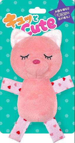 手足がリボンのCuteなぬいぐるみです。お腹を噛むとキュッと音が鳴ります。