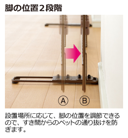 片手で軽々持ち運びでき、手軽に部屋と通路を間仕切りできます。設置場所に応じて脚の位置を調節できる侵入防止用柵です。。