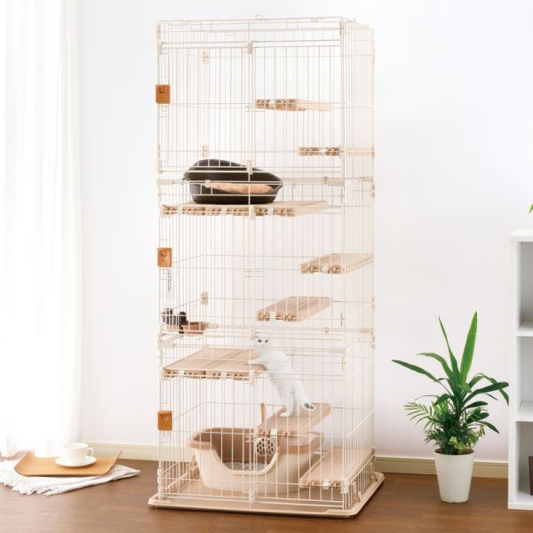 猫用 体重目安/8kg以下 サイズ/72×61×166.5H(cm) 材質/ ワイヤー部・取付金具:スチール ドアロック・滑り部材・トレー:ABS樹脂 ジョイントN・バックルA・B・中間ジョイント・縦連結用ジョイント・棚板:ポリプロピレン L型保持具:ポリエチレン 付属品/棚板11枚