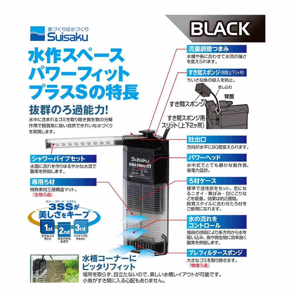 水作 スペースパワー フィットプラス S ブラック