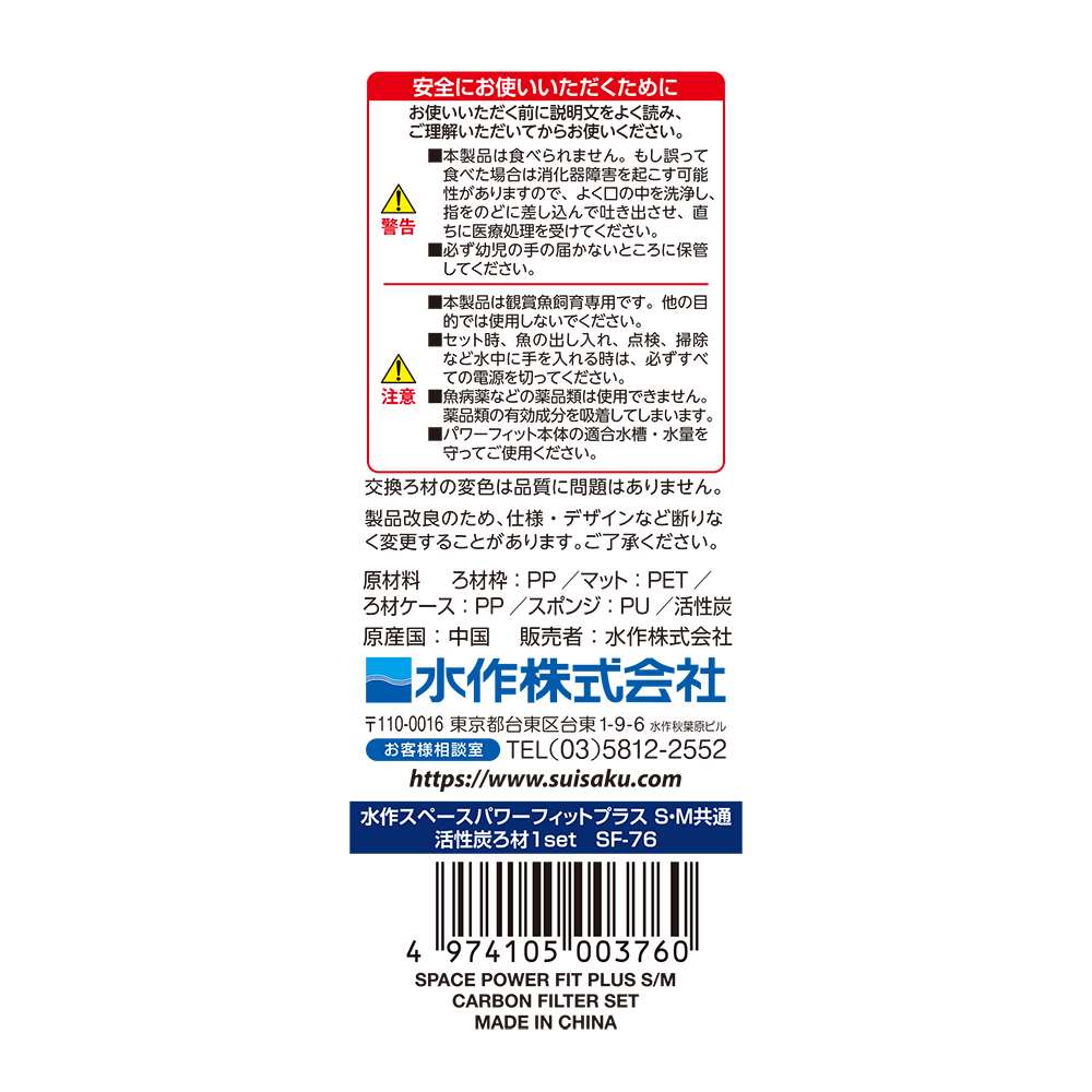 水作 スペースパワー フィットプラス 活性炭ろ材セット 1セット入り