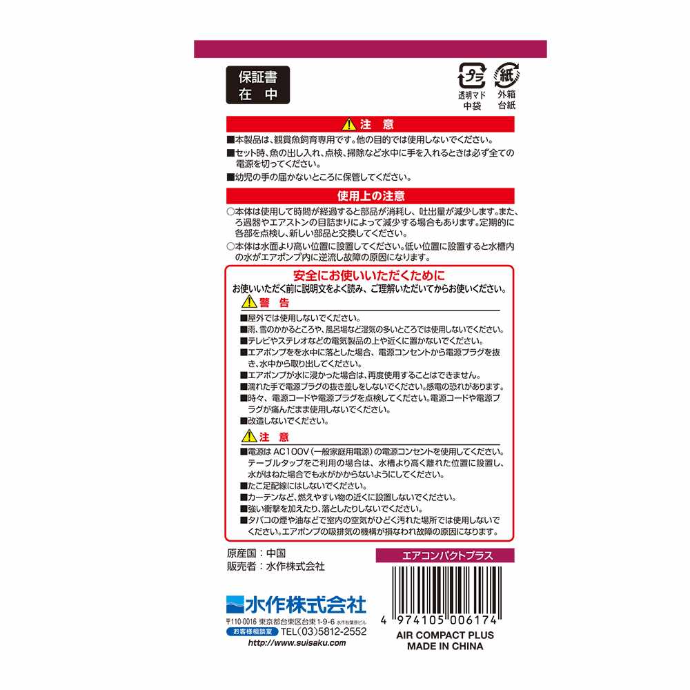 ●本製品は観賞魚飼育専用、その他の目的で使用しない事。