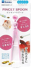 手を汚さずにエサを与えるためのピンセット型スプーンです。フレーク状のエサはピンセットで、粒状のエサはスプーンと使い分けることができ給餌がスムーズにおこなえます。