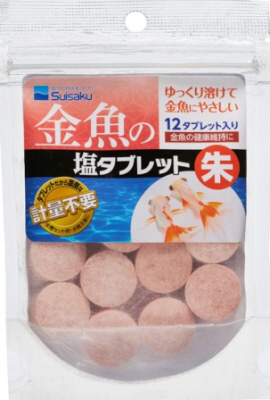 軽量不要のタブレットタイプの塩。水槽に入れるだけで金魚の健康維持し、ミネラルを供給。