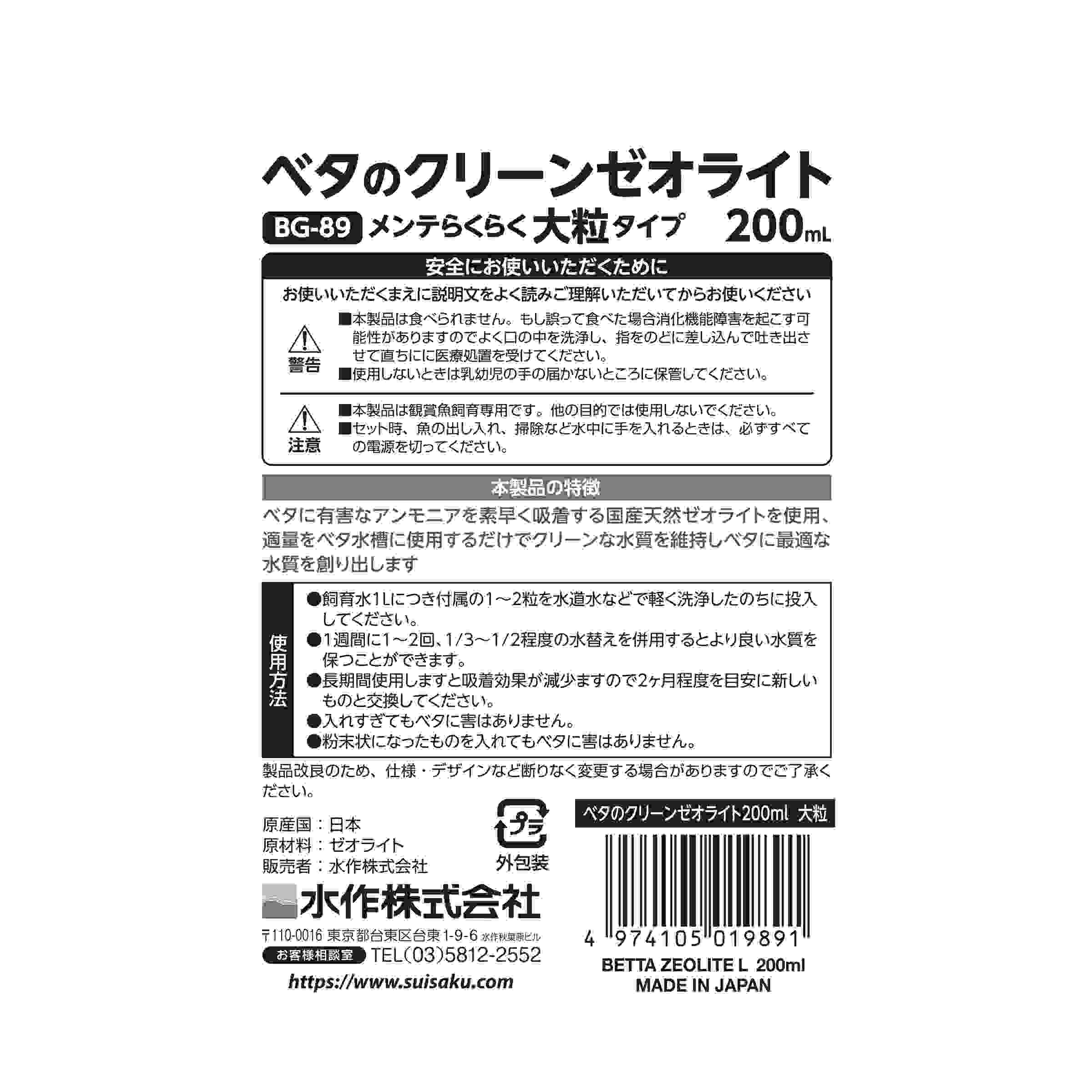 ベタのクリーンゼオライト 大粒 200ML
