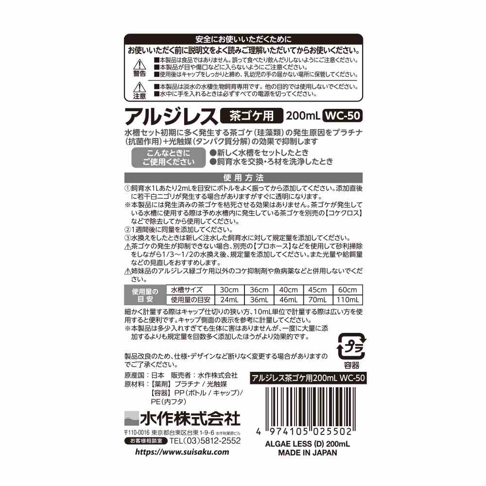 飼育水に添加するだけで茶ゴケの発生を抑制
