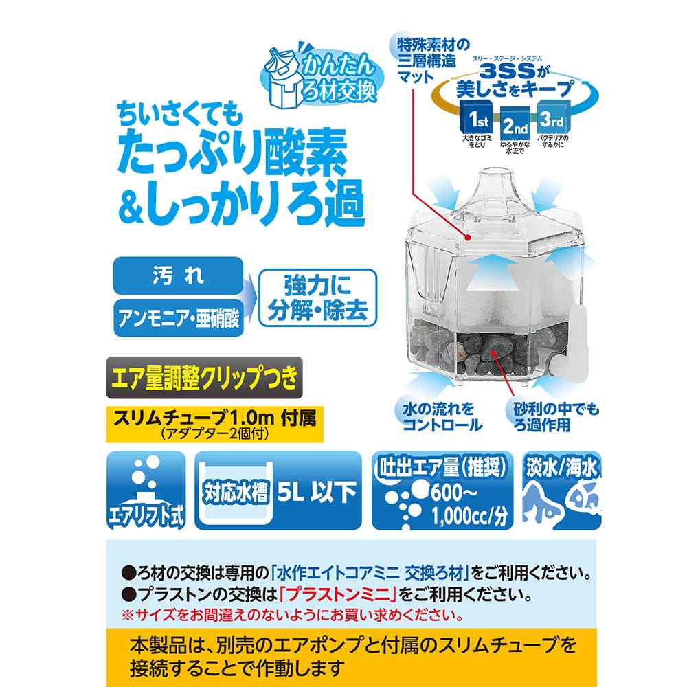 金魚鉢やプラケースなど5L以下の水量に対応。