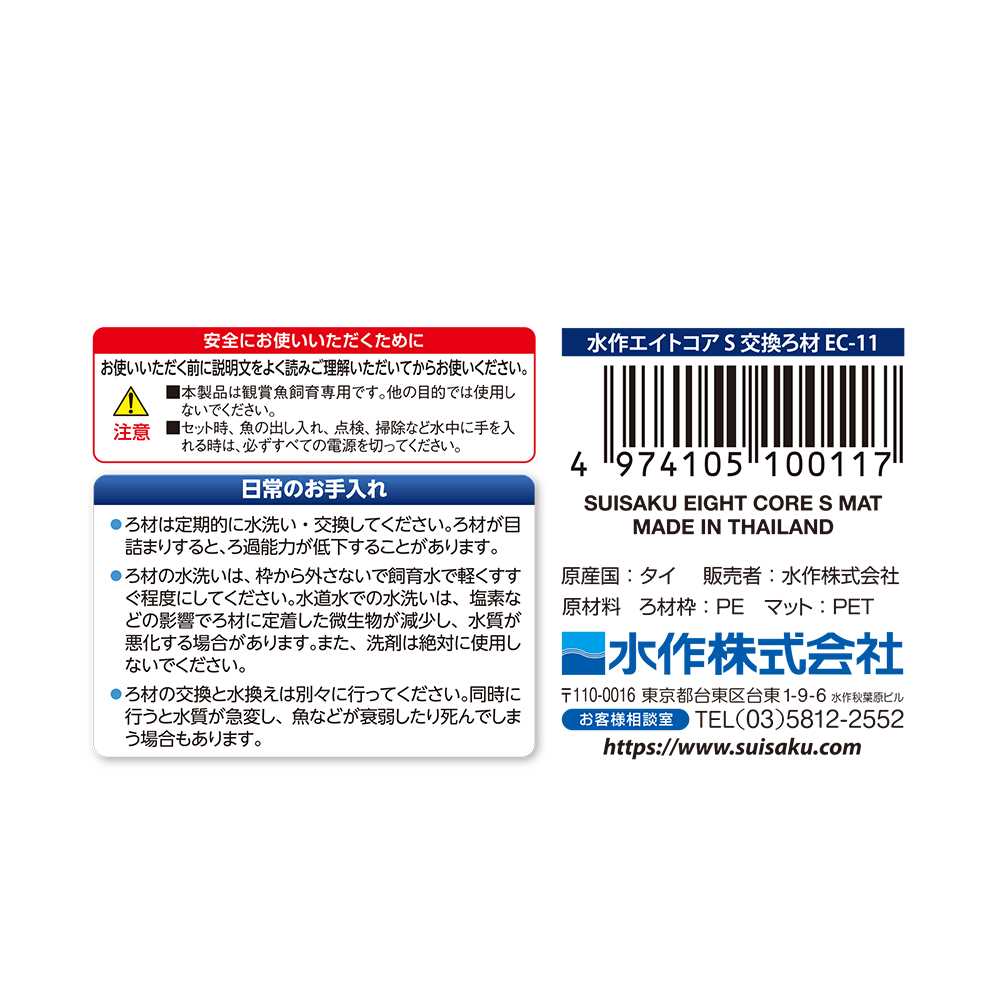 ●本製品は観賞魚及び水棲生物飼育専用につき、他の目的で使用しない事。