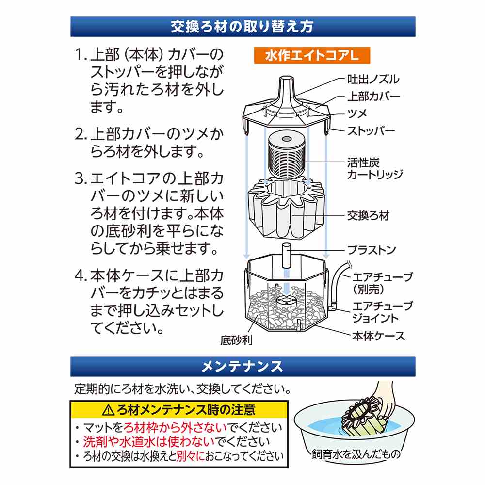 かんたんろ材交換、微生物ろ過で水キレイ