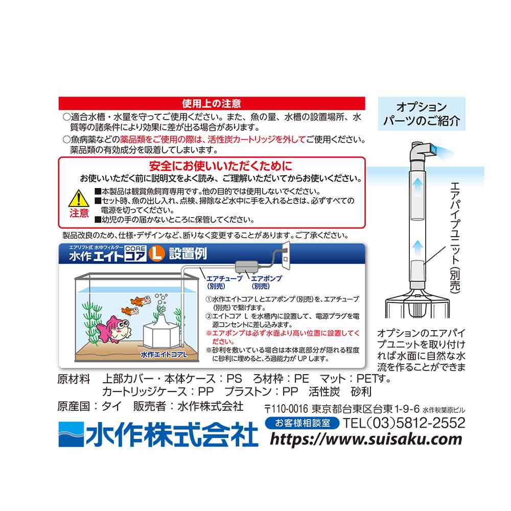●魚病薬を使用する際は活性炭カートリッジを外す事。