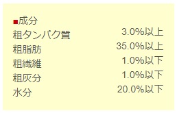 ショ糖、小麦胚芽油、植物性油脂、粉末状大豆たん白、未完熟バナナ粉末、保存料(デヒドロ酢酸Na、パラオキシ安息香酸)、ビタミン類(A、B12、D3、E)