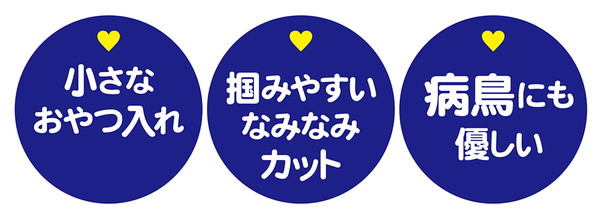 掴みやすいなみなみカットで病鳥にも優しい安心パーチ。